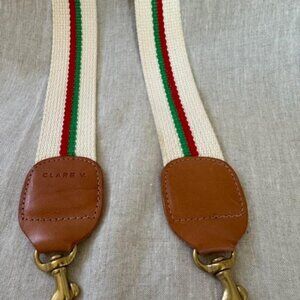 A Clare V. crossbody strap in Natural w/Green & Red Stripes