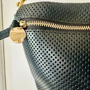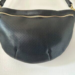 A Clare V. Classic the Grande Fanny in Black Perforated Leather with a detachable / adjustable / interchangeable strap