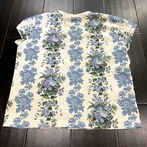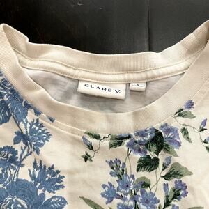 Clare V. Floral Stripe Cotton Classic T-Shirt Blue Cream Women's Size S