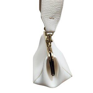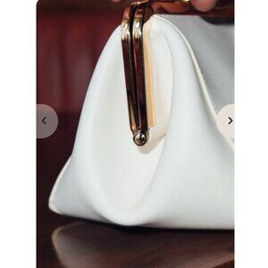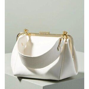 Crafted from smooth white leather with a luxe gold kiss-lock closure, it blends modern minimalism with vintage charm.
