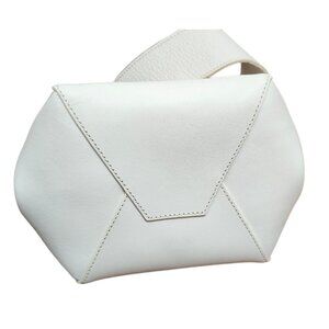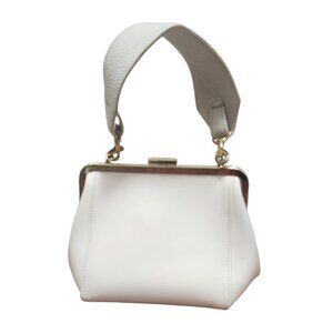 Clare V. Frame Top Handle Bag White Leather Gold Kiss-Lock Clasp Chic Vintage Style Purse