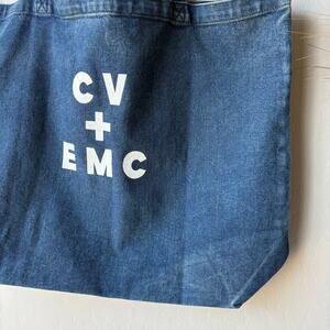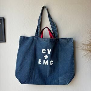 Clare V. Jumbo Tote Bag Graphic Blue Denim Printed Tote.