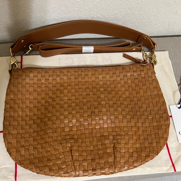 Clare V. Moyen Messenger Natural Woven Checker. Carried once- like brand new condition! Sold out! Comes with dust bag and receipt with personal information blacked out.
