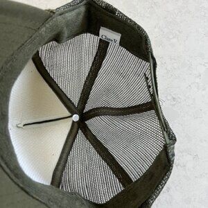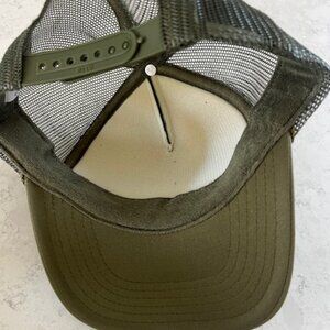 Stylish olive green hat with 'Discothèque' text. Mesh back for breathability. Perfect for casual outings.