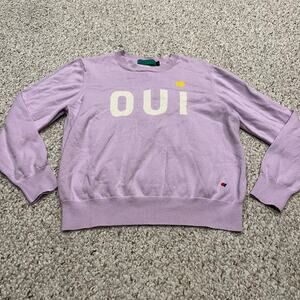 Clare V Oui Classic Cotton Sweater Sz S Lavender Purple Crewneck Pullover Preppy