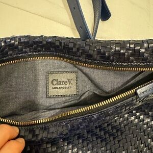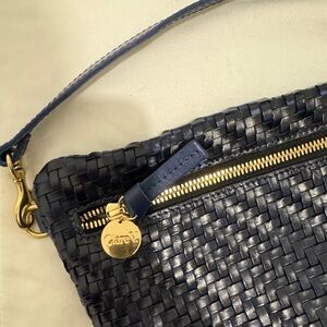 Stylish woven design. Zig zag pattern. Gold zipper accent.