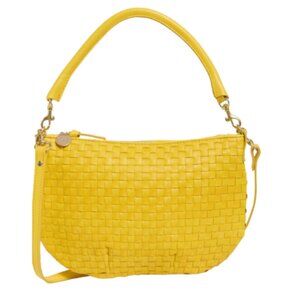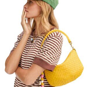 The cutest zip-top mini messenger With tubular shoulder & crossbody straps Made of handwoven leather Dimensions (in inches): 11 W x 7 1/2 H Strap: 16 1/4 inch shoulder - detachable Strap: 41 1/2 inch crossbody - detachable Lined in chambray Cuoio zipper No interior/exterior pockets Made in Bangladesh