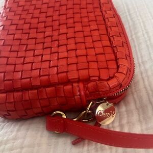 Stylish woven design. Vibrant red-orange color. Excellent condition.