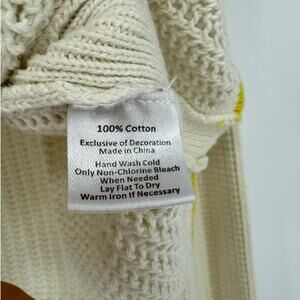 Clare V Sweater Raglan Open Weave Knit 100% Cotton Cream Neon Size Large L