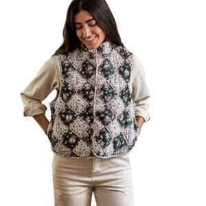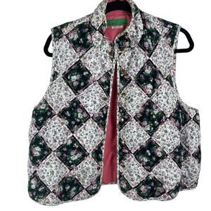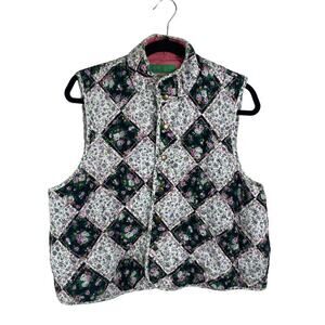 Clare V. Quilted Floral Print Button Front Reversible Vest Black Lilac