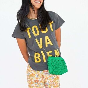 Clare V. Tout Va Bien Classic Tee in Faded Black ( Dark Gray ) Size XL