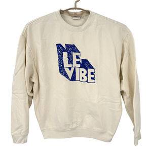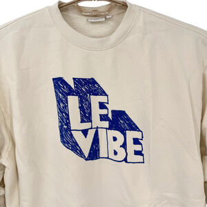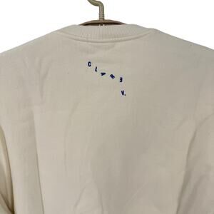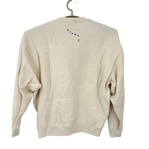 Clare V Womens LE Vibe Cotton Pullover Crewneck Sweatshirt Cream Blue Size Small