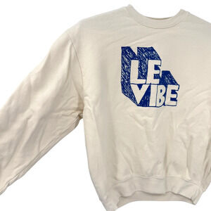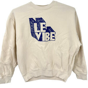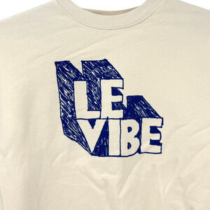 Clare V Womens LE Vibe Cotton Pullover Crewneck Sweatshirt Cream Blue Size Small