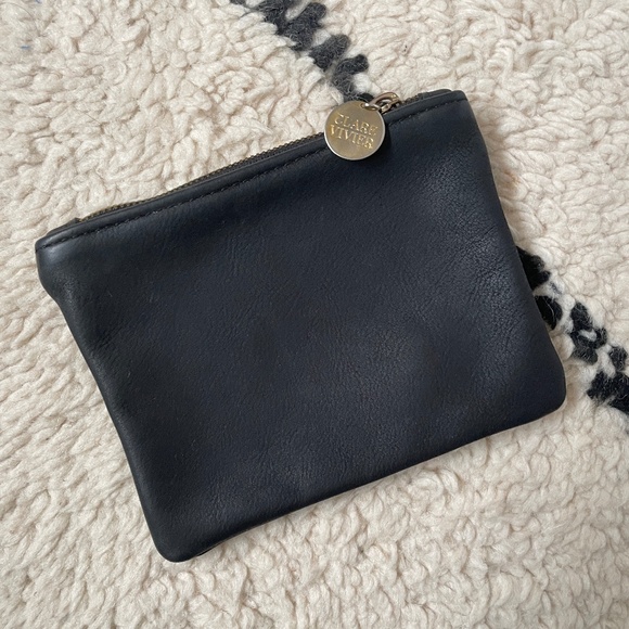 Stylish Clare V pouch in black with gold zipper. Features a zip closure. Perfect for essentials.