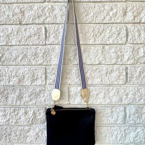 Clare V cotton webbing bag strap in blue/oyster mini stripe NWOT