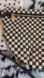 Stylish checkered design. Features a zip closure. Includes adjustable strap.