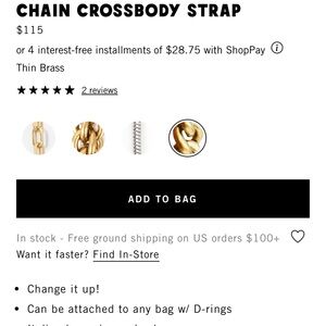 Elegant Coach chain strap. Features dual clasps. Ideal for handbags.
