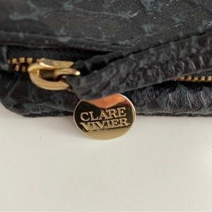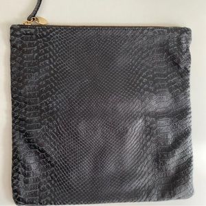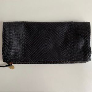 Clare Vivier snakeskin black fold over clutch. Can use as clutch or storage in larger tote.