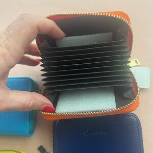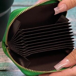 This small card wallet fits in your hand, pocket, or purse. There are 12-card slots for cards cash, receipts, even lip gloss.