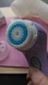 Clarisonic cleansing brush with purple handle. Includes white charging base and 3 new deep pore brush heads. Comes with ma:nyo Deep Pore Cleanser sample for all skin types. charged and sanitized.