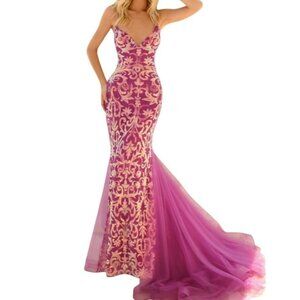 Clarisse Sparkle V-Neck Mermaid Prom Maxi Gown Fuchsia Magenta 800227 Size 4 NWT