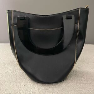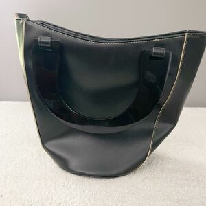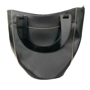Clarita Black Structured Handbag Hobo Top Handles Patent Leather Vtg Old Money