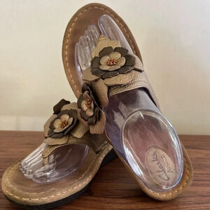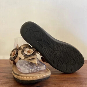 Clark Artisan Sz 9.5 Beaded Floral Metallic Platform Sandals Thongs Boho Femme