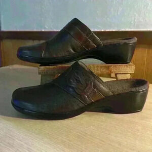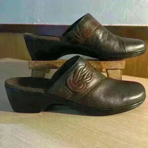 Clark Bendables Brown Leather Round Toe Low Heel Mules Size 7.5 are in Excellent Used Condition. These shoes are comfortable and great looking perfect for the office or just for being on the go!! Original price of $85 we are letting these run off for just $40!!