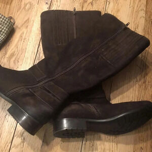 Boots are in very good condition. Tips and back are a bit matted but no stains or major scratches.