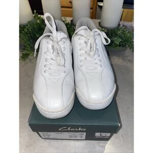 Clark Cindy Smu Style Craft Leather Women’s White Tie Walking Shoes Size 6 HTF. Clean good condition does have a ding on front shown in last photo. Preowned in original box