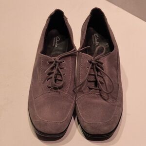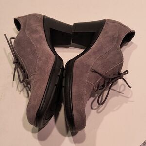 Grey Suede laced shoes. Great pre-owned condition. Heels approx. 2 in.