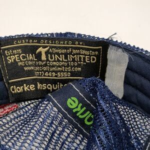 Clarke Strapback Trucker Hat Blue OSFA Adjustable 6 Panel Patriotic Mesh Back
