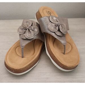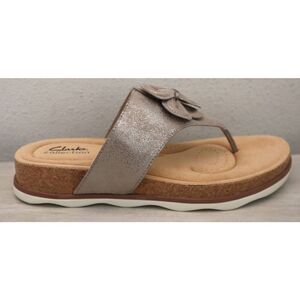 Clarks 26164864 WMN Sz 9M Taupe Metallic Brynn Style Leather Slip-On Sandals