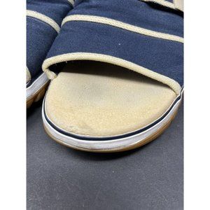 Clarks 36124 Navy Tan Canvas Hook & Loop Slide On Comfort Womens Sandals Sz 11M