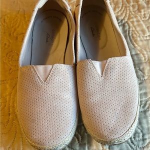 Clarks espadrille . Slip-ons, like new . Original box included . Used no more than 2 times . Wide width