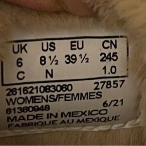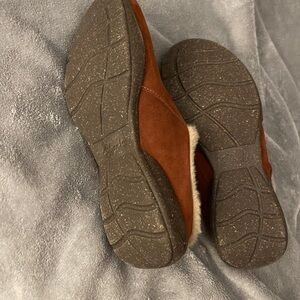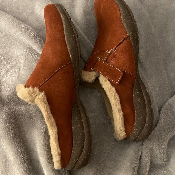 brand new suede Clarks size says 8 1/2 but they run small so I am an 8 1/2 and it doesn’t fit my foot. It’s a little too small so I would say they fit a 7 1/2 much better.