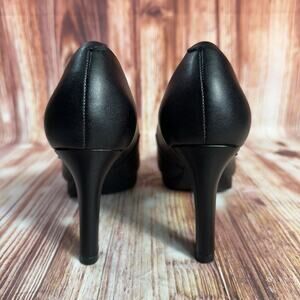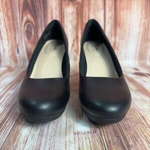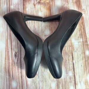 Clarks AMBYR JOY Size 7.5 Black Leather High Heel Closed Toe Pumps Dress Shoes