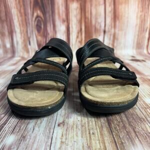 Clarks APRIL WILLOW Size 9 Black Leather Sandals Slides Comfort Open Toe Shoes