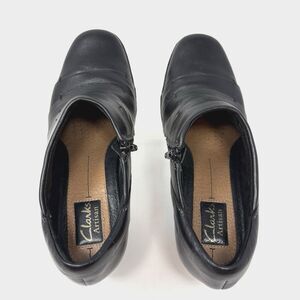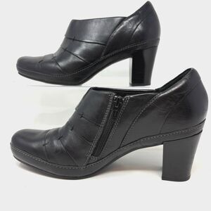 Clarks Active Air Ankle Booties Womens 8.5 Zipper Black Leather Stacked Heels