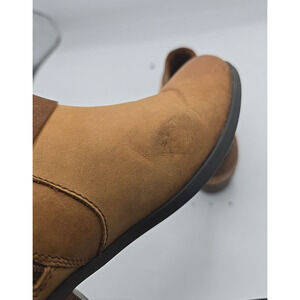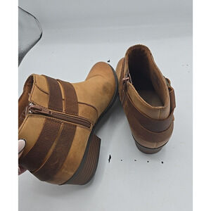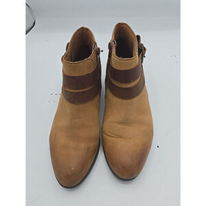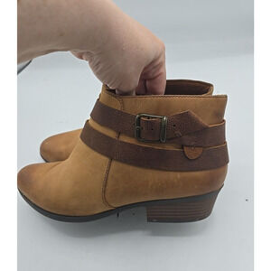 Clarks Addiy Cora Brown Leather Side Zip Strappy Ankle Bootie Womans Size 8W. Some surface spotting, pictured. Pre-owned