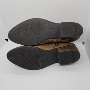 Clarks Addiy Cora tan nubuck ankle boots with decorative strap and buckle 8.5M