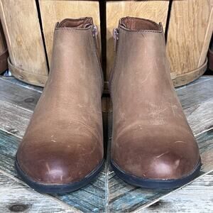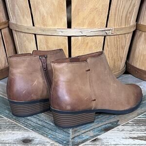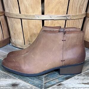 Clarks Addiy Zora Tan Brown Leather Zip-Up Ankle Boots Booties Womens Size 8.5