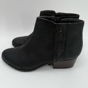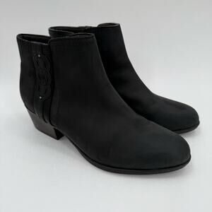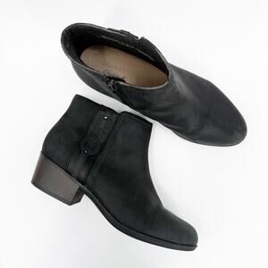 Clarks Adreena Lilac Ankle Boots SZ 7.5 Black Nubuck Booties Block Heel Leather