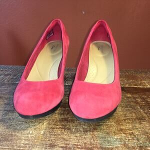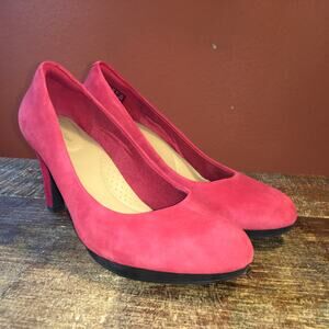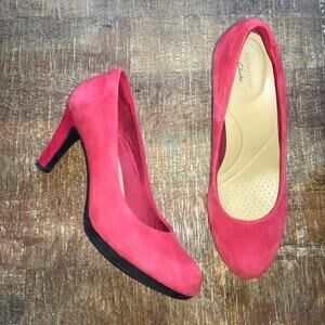 Clarks Adriel Viola Pump Womens 8.5 Heel Shoe Red Suede Closet Staple Classic