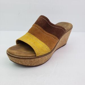 Clarks Aisley Lily Womens Size 8 Brown Suede Slip On Cork Wedge Sandals