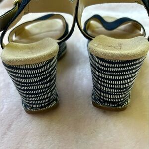 Clarks Akilah Eden Navy Blue Size 8.5 Wedge Shoes Striped Suede Sandals NEW