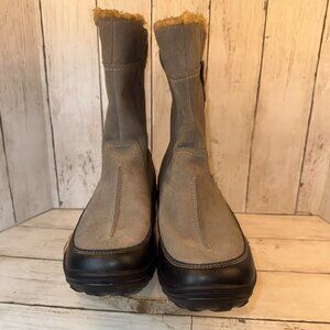Clarks Andes Fortune Boots Womens 9.5 Gray Suede Leather Side Zip Fleece Lined