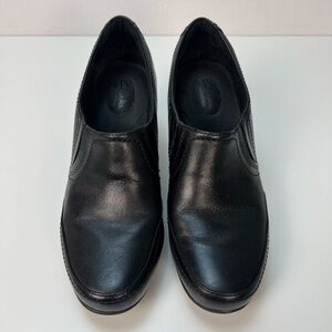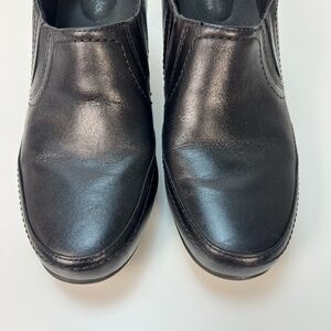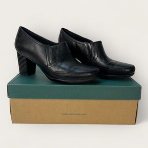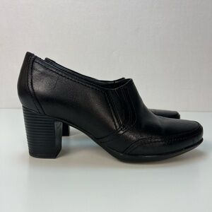 Clarks Ankle Bootie Pumps Black Leather Promise Chelly Block Heel Sz 10 Comfort