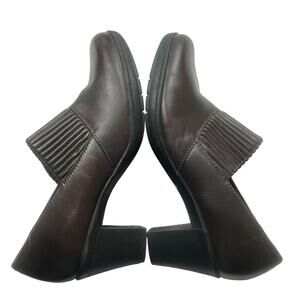 Clarks Bendables ankle bootie, slip on style 80826 with pleated vamp in brown leather. Women's size 8 Wide.