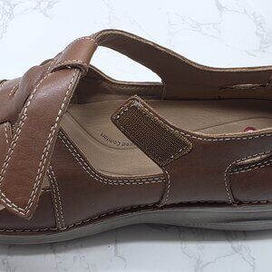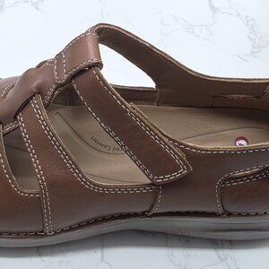 Clarks Appley Strap Shoes Womens 9 M Tan Leather Closed Sandal Sneaker Comfort